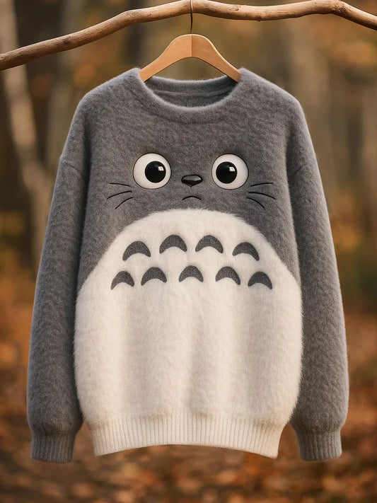 Women's Colorful Cat Embroidered Art Cozy Knitted Turtleneck Sweater - As picture
