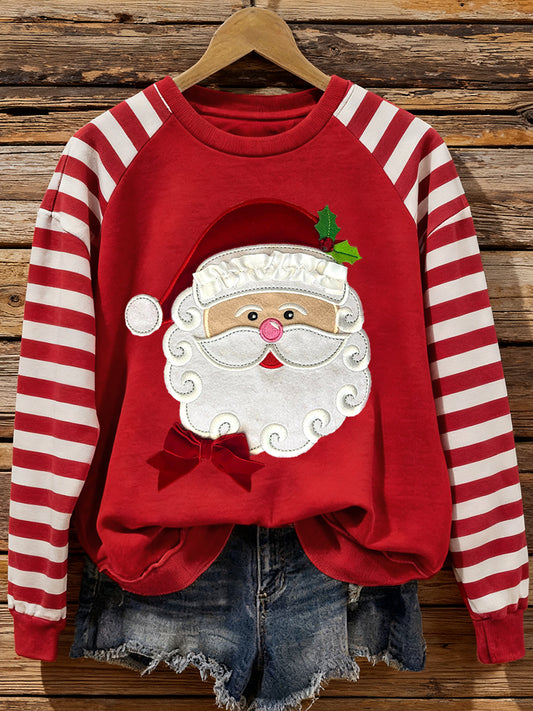 Women's Retro Santa Claus Print Sweatshirt - Red