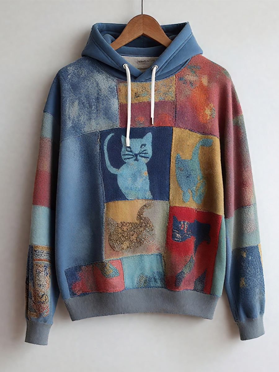 Men's Animal Cat  Drop-Shoulder Hoodie (No Pockets)