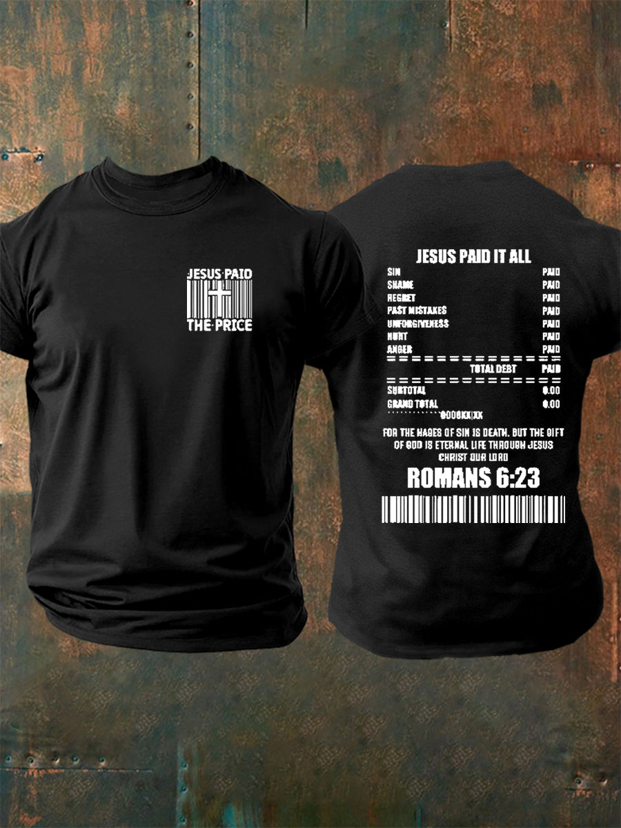 Men's Bible Verse Jesus Paid It All Cross Short Sleeve T-shirt