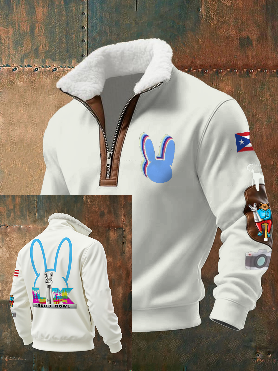 Men's Bunny Football Music Lover Printed Hoodie