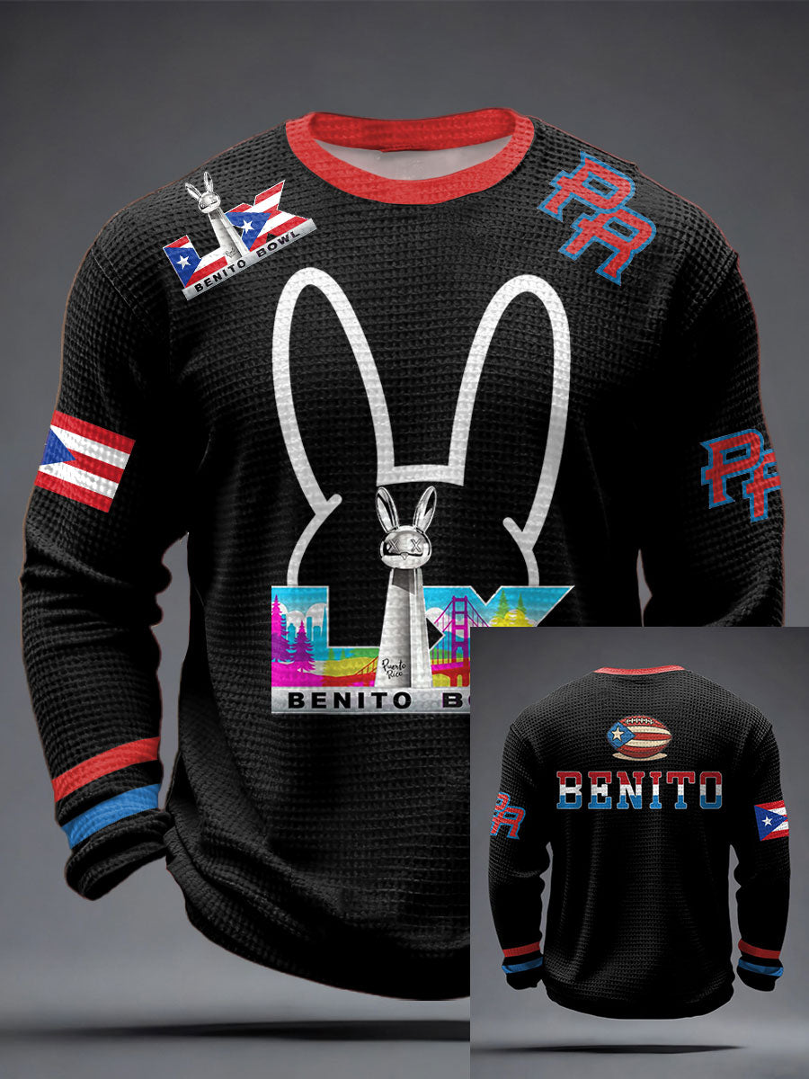 Men's Bunny Football Music Lover Printed Waffle Tops