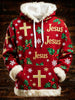 Men's Christmas Cross Print Casual Fur Collar Top