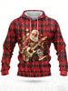 Men's Christmas Tree Plaid Punk Santa Claus Print Casual Velvet Raglan Hoodie Sweatshirt