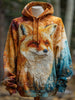 Men's Fox Art Print Casual Hoodie