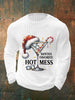 Men's Funny Christmas Santa's Favorite Hot Mess Casual Waffle Long Sleeve Top