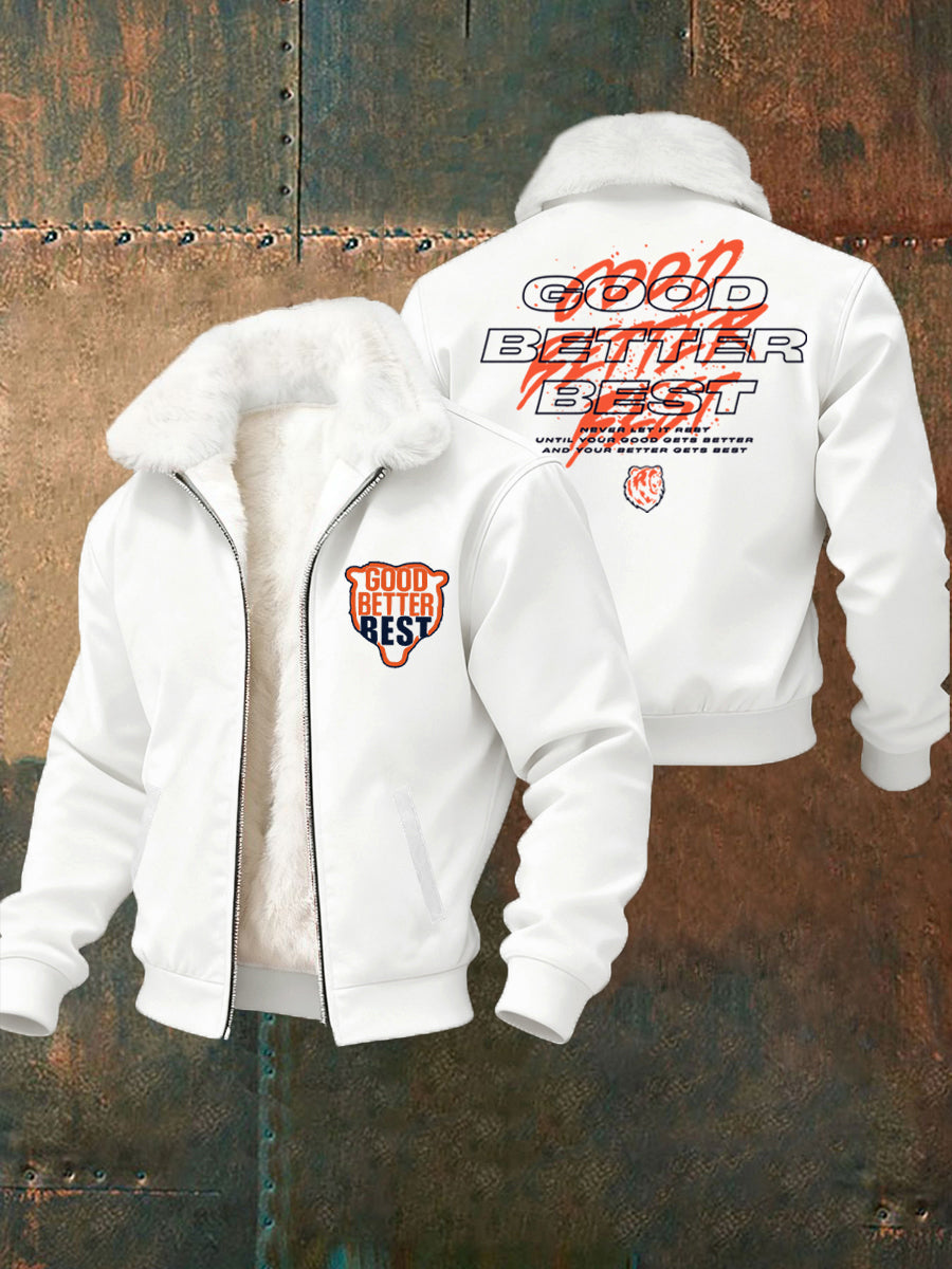 Men's Good Better Best Print Football Fans Gameday Casual Plush Zipper Jacket