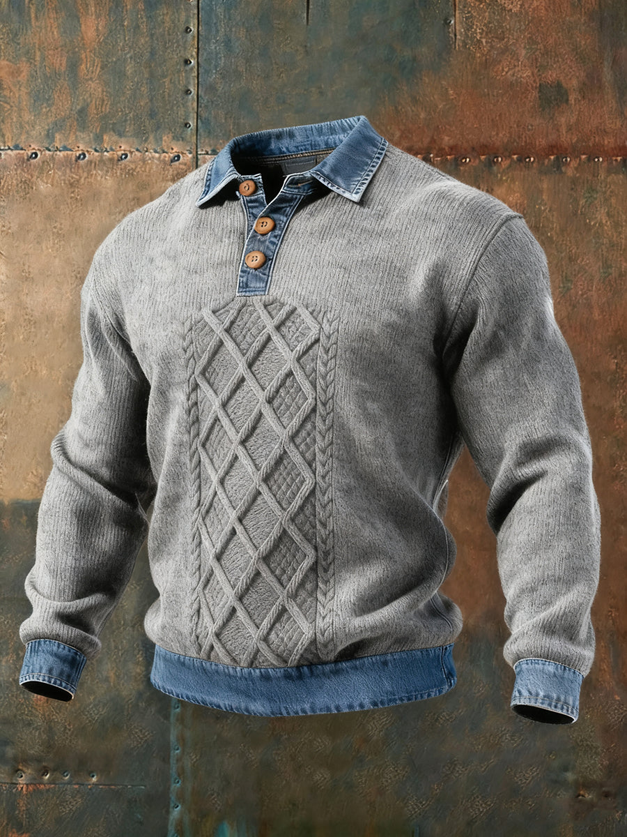 Men's Textured Denim Collar Sweatshirt
