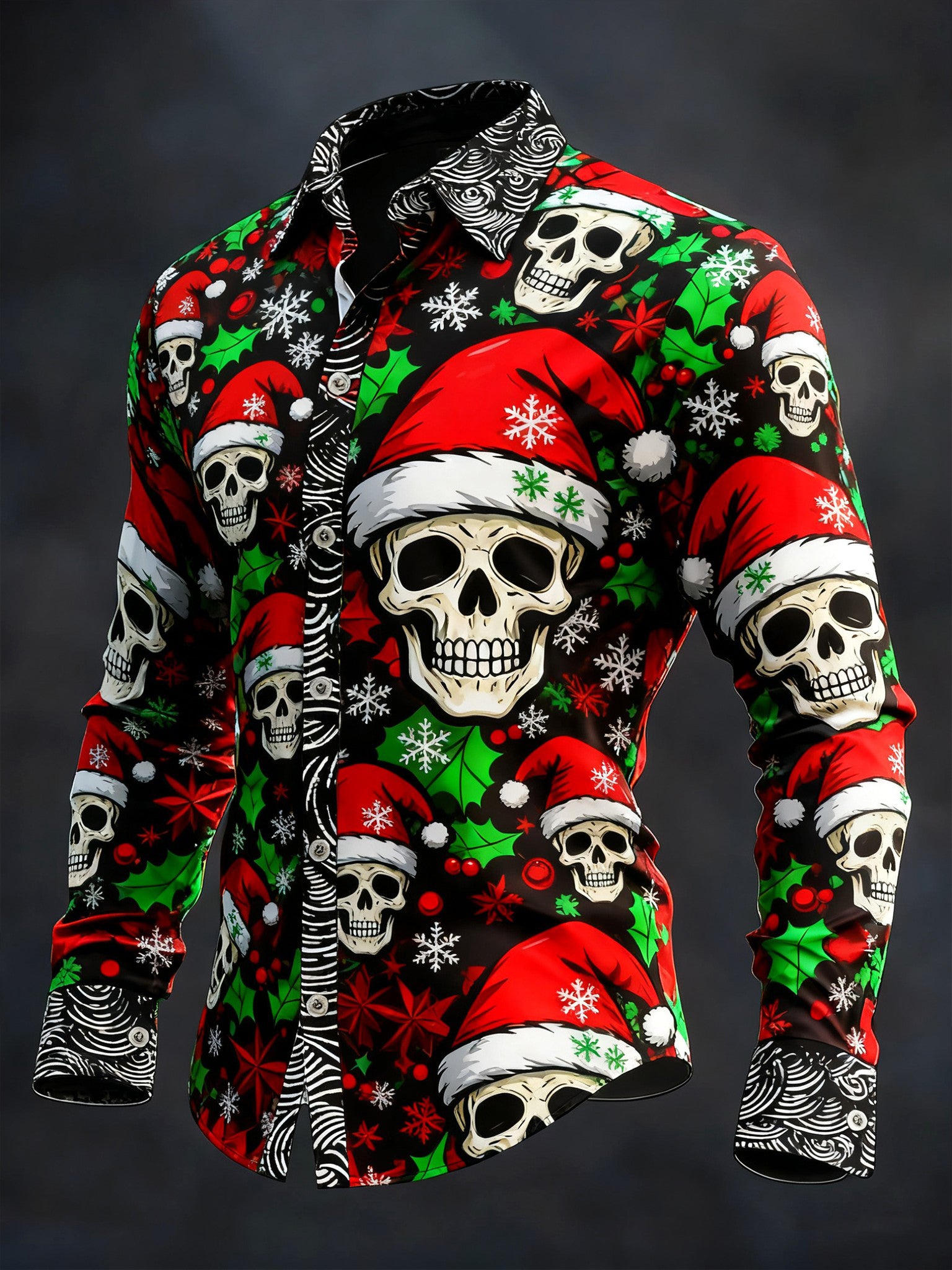 Men's Vintage Christmas Skull Long Sleeve Shirt