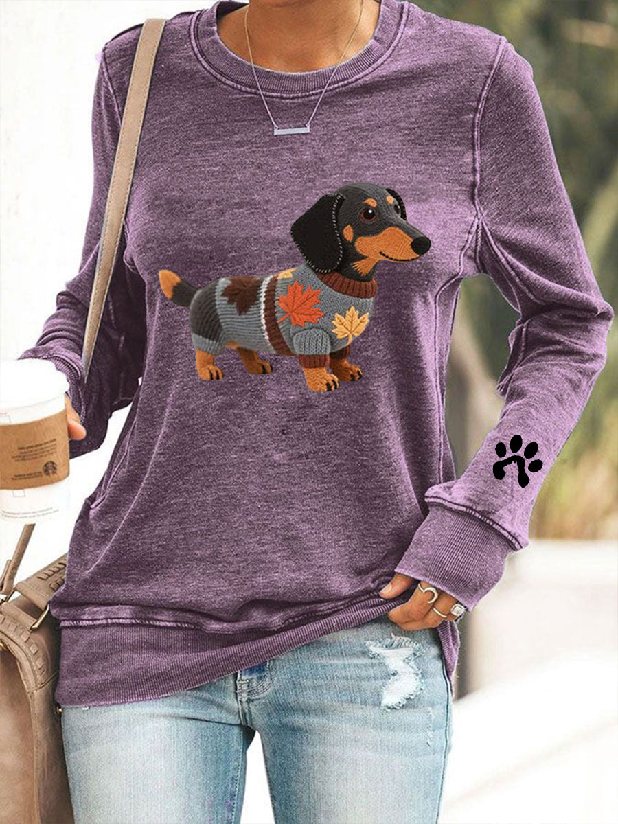 Women's Autumn Dog Art Print Long Sleeve Sweatshirt