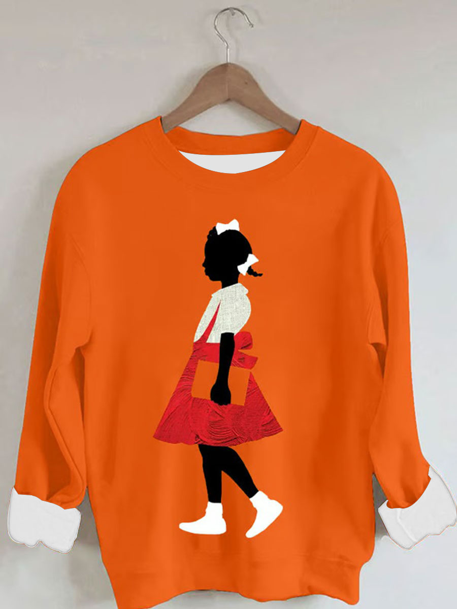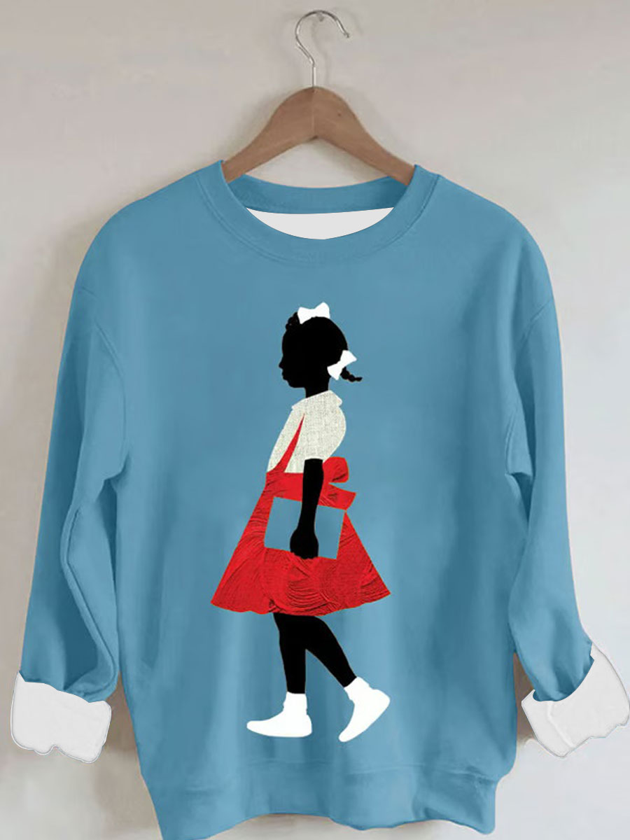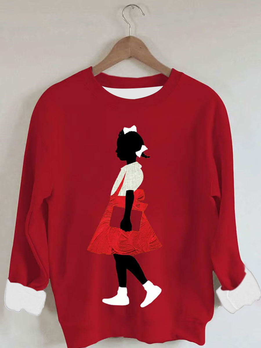 Women's Black Girl In Red Dress Art Print Casual Sweatshirt