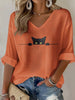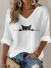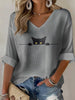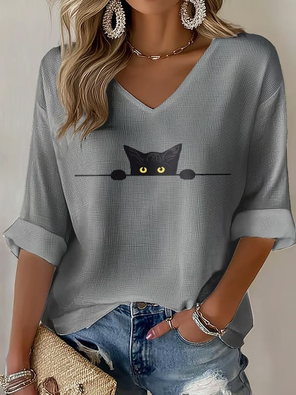 Women's Cat Print Waffle T-shirt