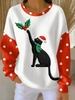 Women's Christmas cat print Ribbed Round-Neck Sweatshirt