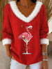 Women's Christmas Flamingo Cocktail Glass Print Casual Fur Collar V-Neck Top