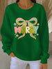 Women's Christmas Merry Christmas Ribbed Round-Neck Sweatshirt