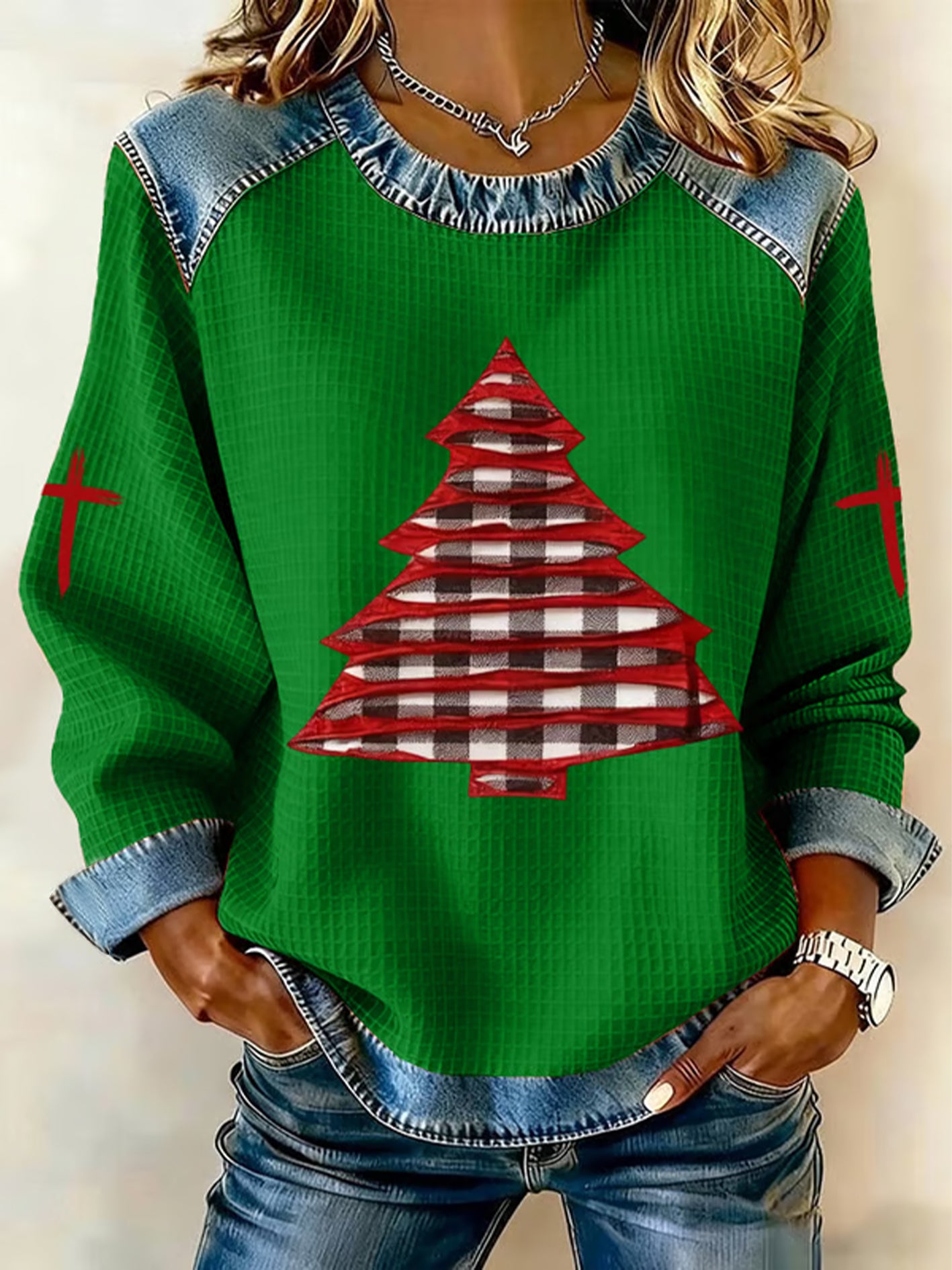Women's Christmas Pattern Patchwork Art Sweatshirt