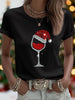 Women's Christmas Red Wine Glass Print Casual Tee