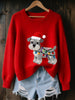 Women's Christmas Schnauzer Dog Felt Art Cozy Knit Sweater