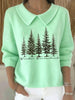 Women's  Christmas Winter Wonderland Christmas Tree Printed Baby Doll Collar Top