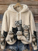 Women's Cute Cat Art Print Casual Flannel Sweatshirt
