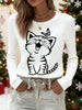 Women's Cute Cat Print Cat Lovers Casual Long Sleeve Waffle Top