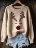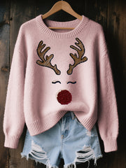 Women's Cute Reindeer Embroidered Cozy Knit Sweater