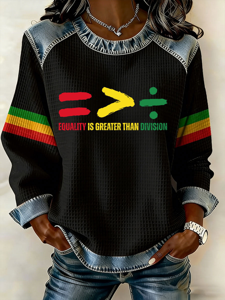 Women's Equality Is Greater Than Division Denim Patchwork Top