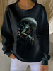 Women's Halloween Alien Ribbed Round-Neck Sweatshirt