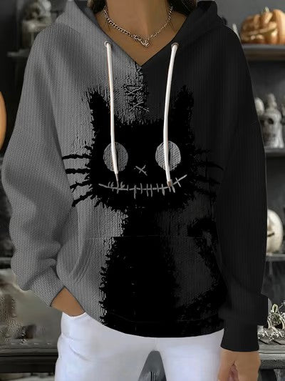Women's Halloween Patchwork Hooded Sweatshirt with Pockets