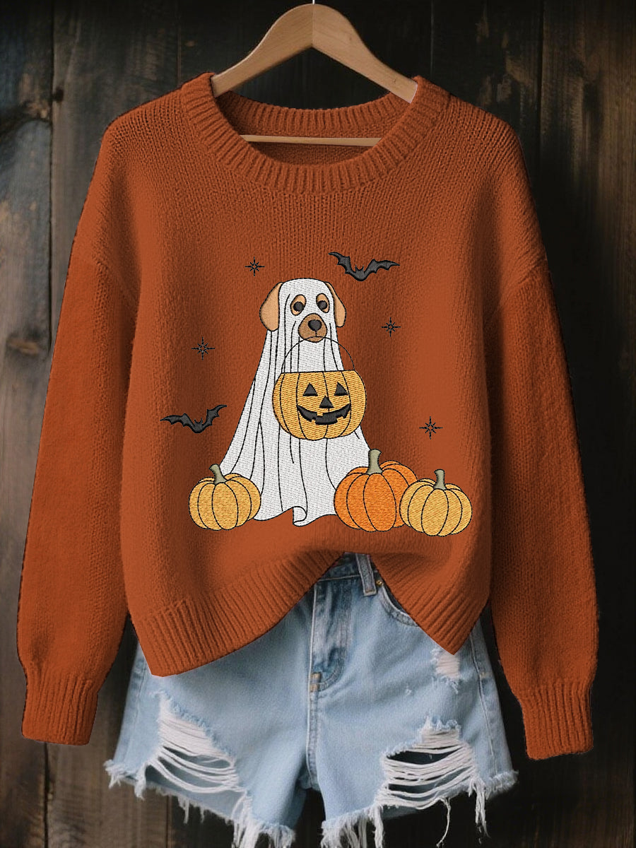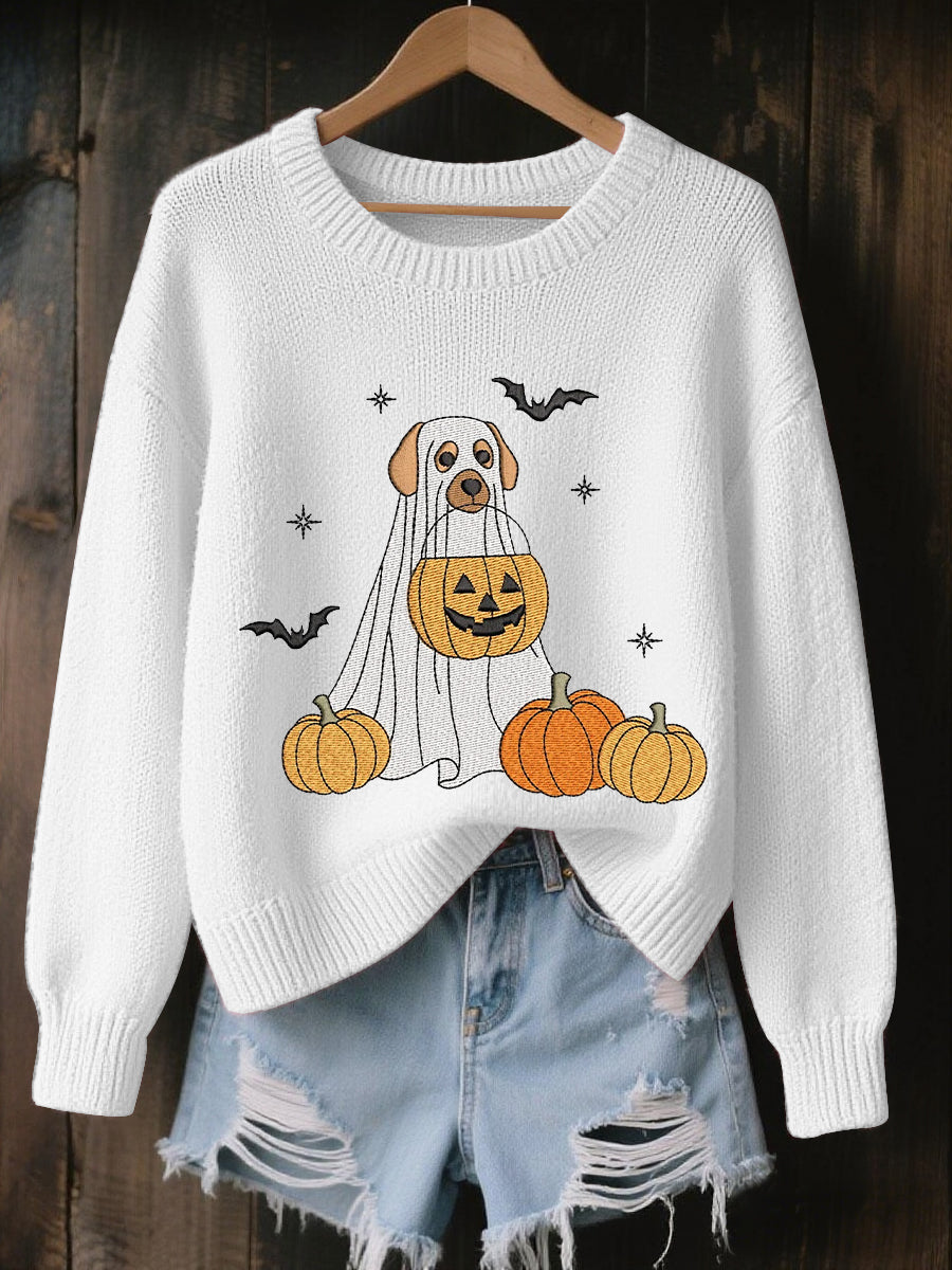 Women's Halloween Trick Or Treat Dog Ghost  Sweatshirt