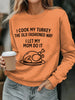 Women's I Cook My Turkey The Old Fashioned Way I Let My Mom Do It Funny Thanksgiving Sweatshirt