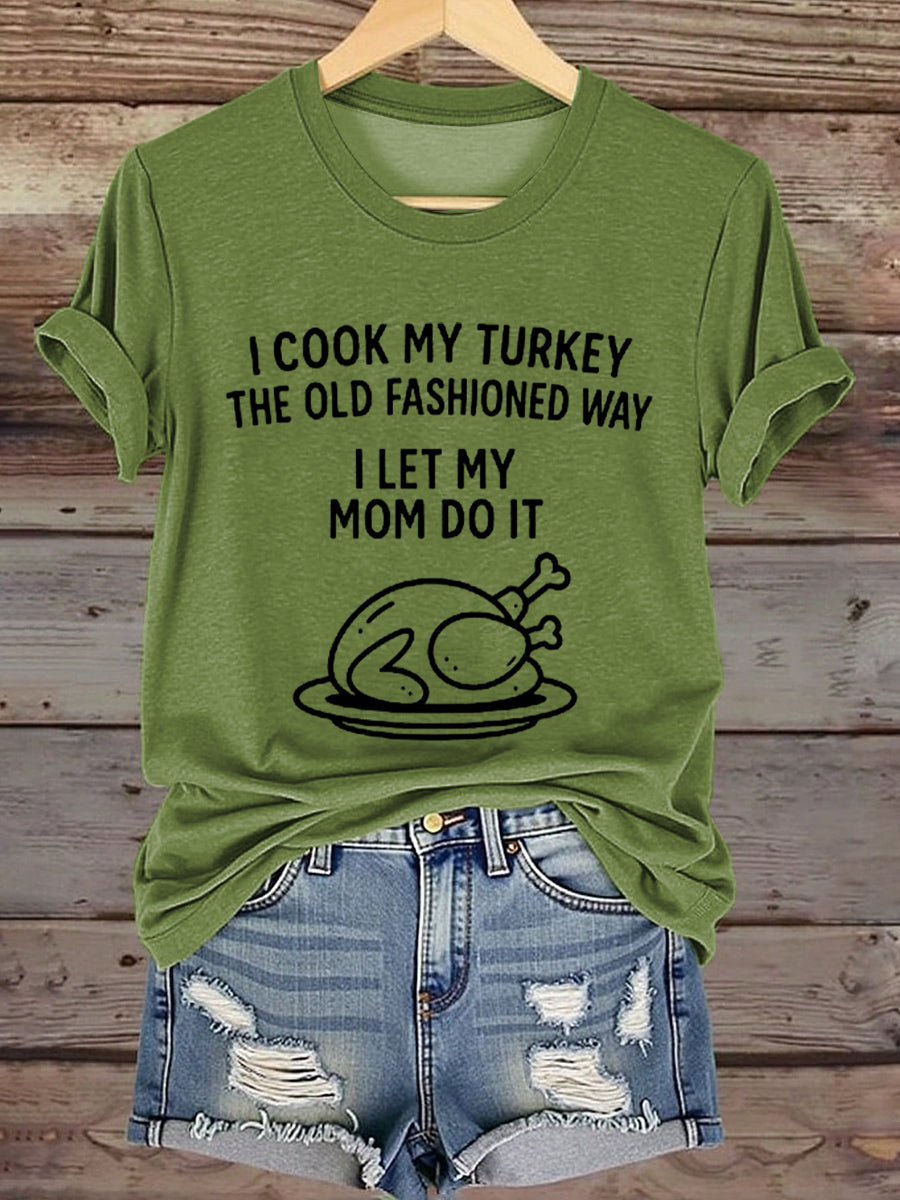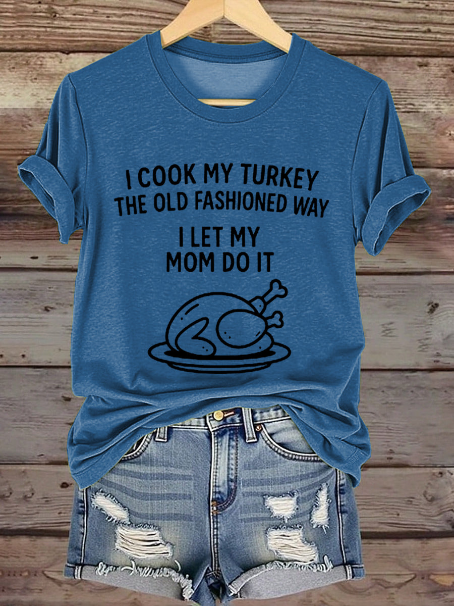 Women's I Cook My Turkey The Old Fashioned Way I Let My Mom Do It Funny Thanksgiving T-shirt