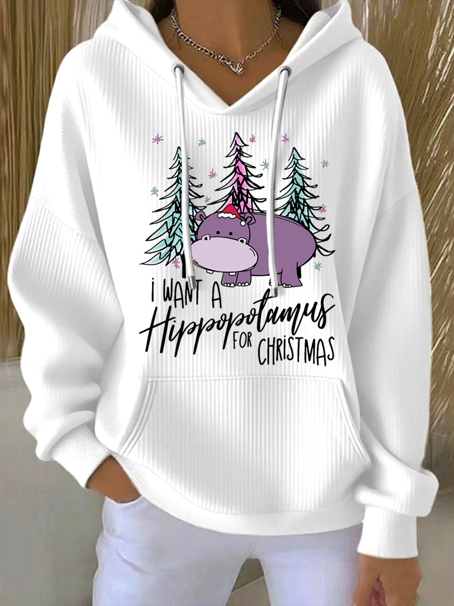 Women's I Want A Hippopotamus For Christmas Casual Hoodie