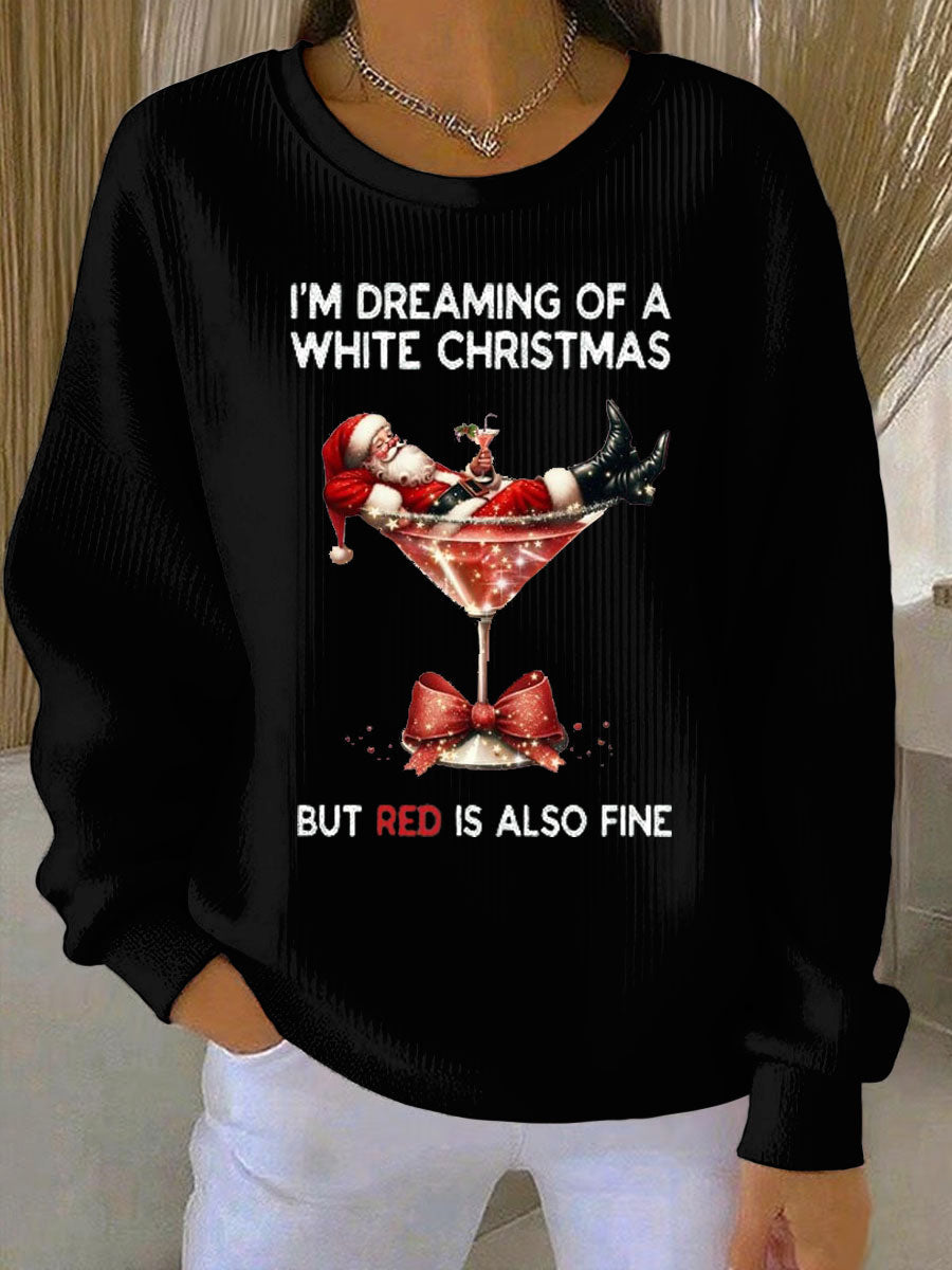 Women's I'm Dreaming Of A White Christmas But Red Is Also Fine Ribbed Round-Neck Sweatshirt