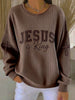 Women's  Jesus Is King Print Ribbed Round-Neck Sweatshirt