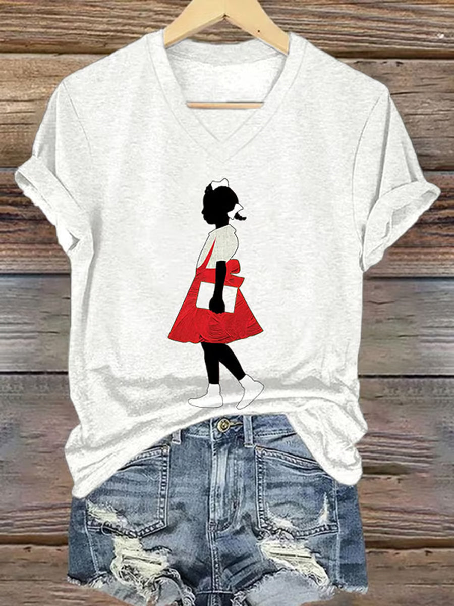 Women's Juneteenth Black Girl In Red Dress Art Print Short Sleeve T-Shirt