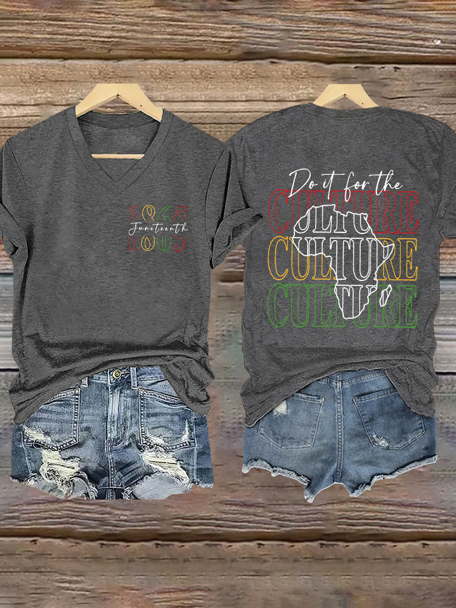 Women's Juneteenth Printed V-Neck Short sleeve T-shirt