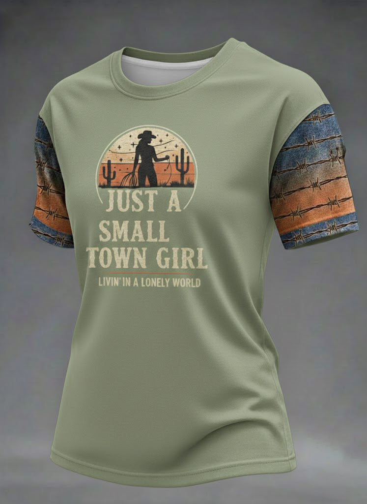 Women's Just A Small Town Girl Livin' In A Lonely World Printed T-shirt