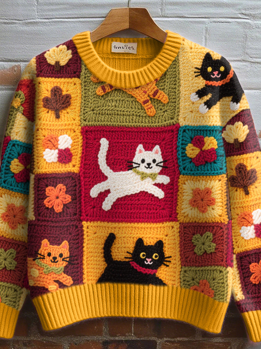 Women's Lovely Cats Crochet Art Cozy Knit Sweater