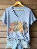 Women's Lovely Cats Patchwork Pattern V-Neck T-Shirt