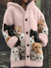 Women's Lovely Fuzzy Colorful Cats Cozy Hooded Cardigan