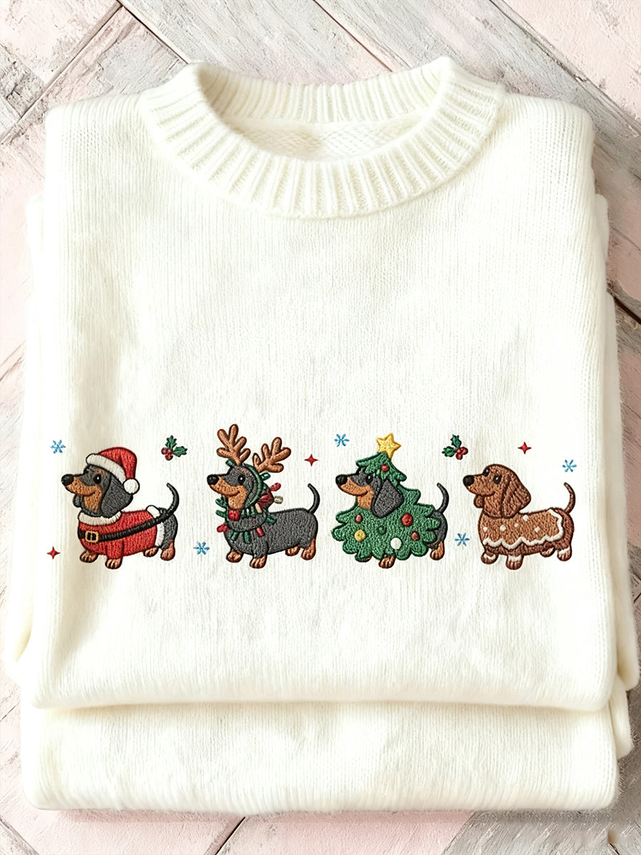 Women's Merry Christmas Cute Dog Christmas Tree Art Print Sweater