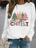 Women's Merry Christmas Pink Christmas Tree Print Casual Sweatshirt