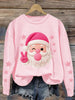 Women's Merry Christmas Retro Yarn Crochet Santa Claus Pink Santa Blowing Bubble Gum sweatshirt