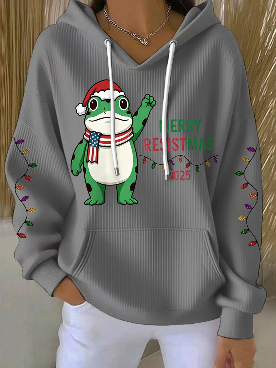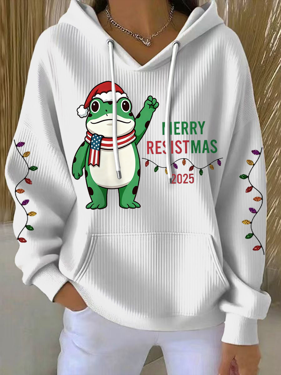 Women's Merry Resistmas Portland Frog Printed Hoodie
