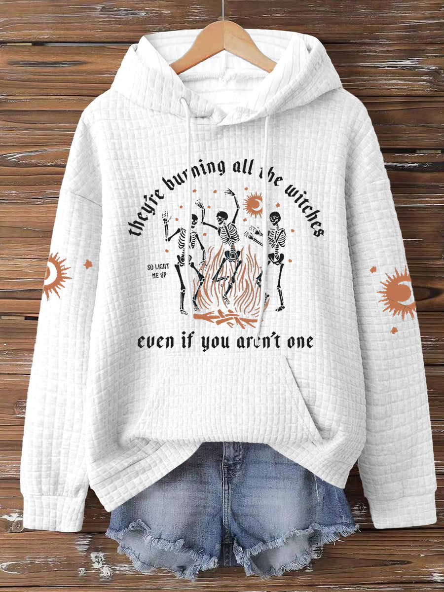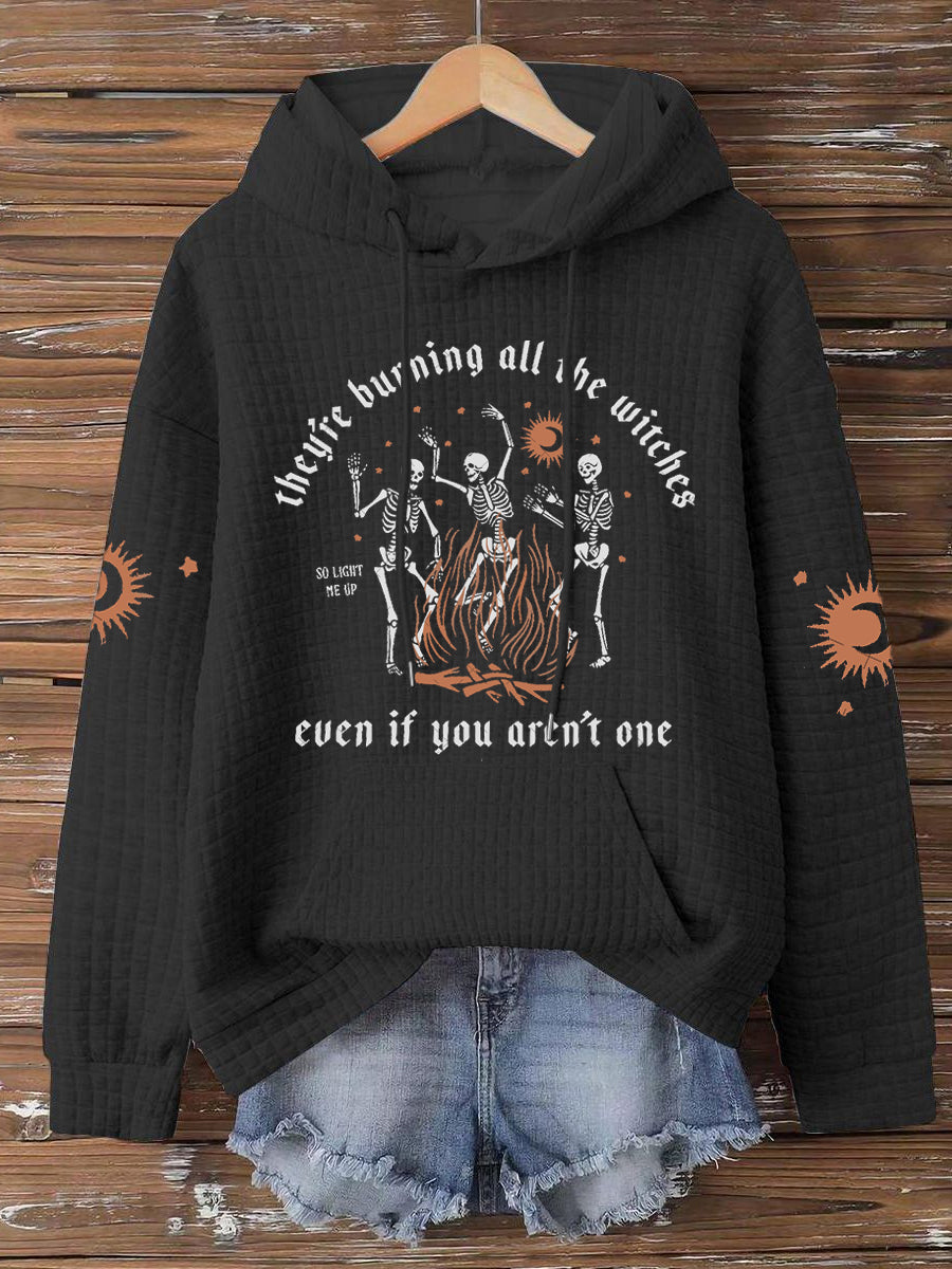 Women's Music Lover Halloween Burning All The Witches Printed Hoodie