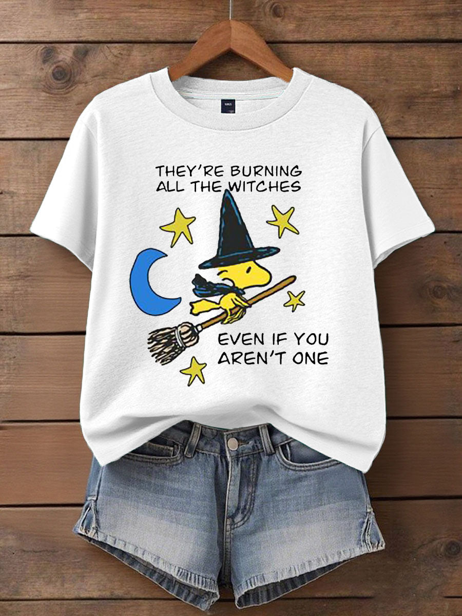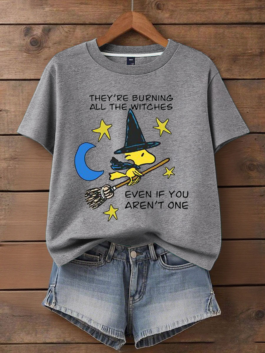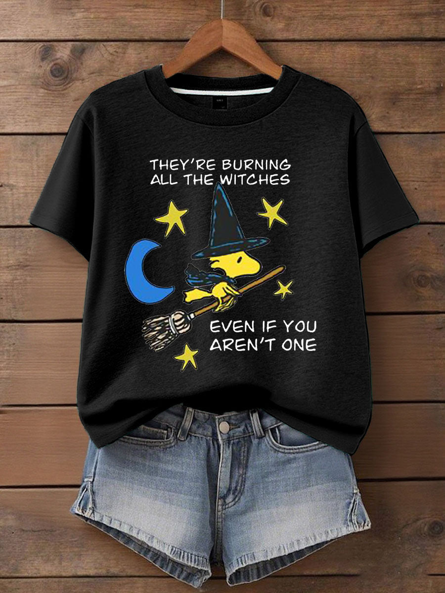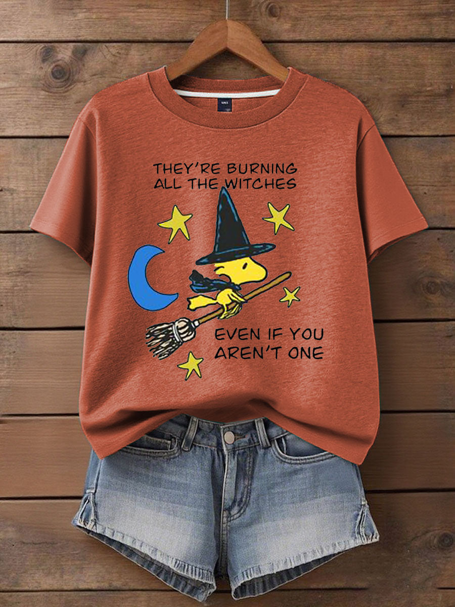 Women's Music Lover Halloween They're Burning All The Witches Printed T-Shirt