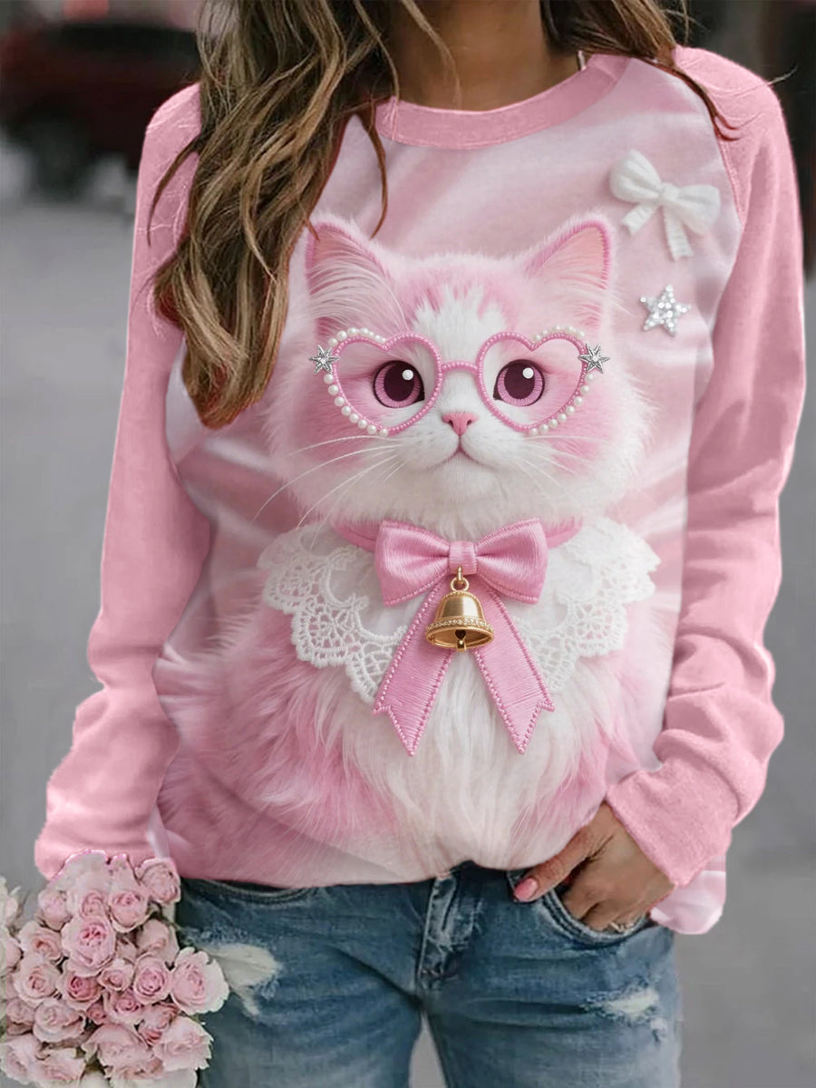 Women's Pink Cat Pink Ribbon Breast Cancer Awareness Sweatshirt