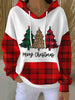 Women's Plaid Christmas Tree Print Casual Hoodie