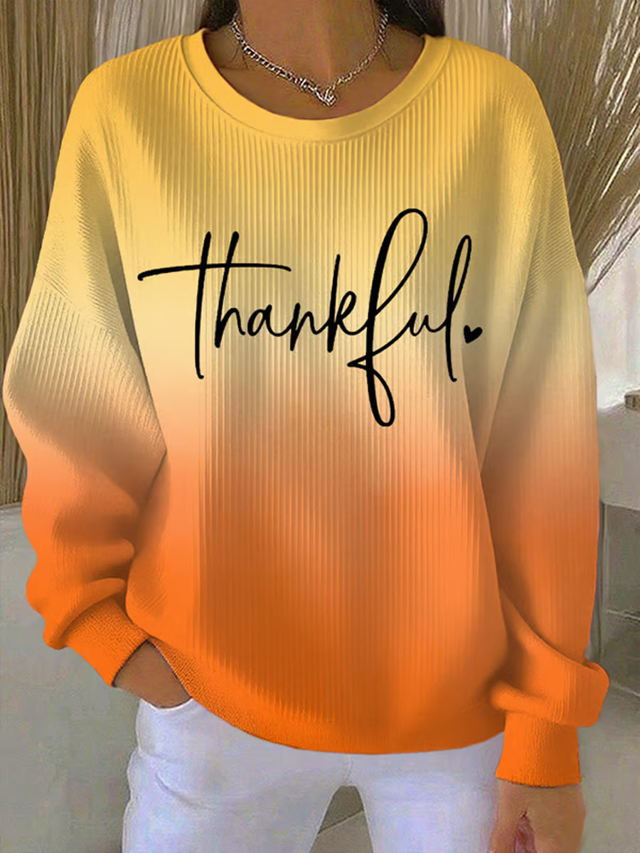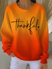 Women's Retro Thanksgiving Thankful Print Round Neck Sweatshirt